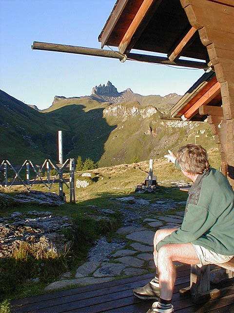 Kleis points to the Lobhorner, a famous crag in the Bernese Oberland. |