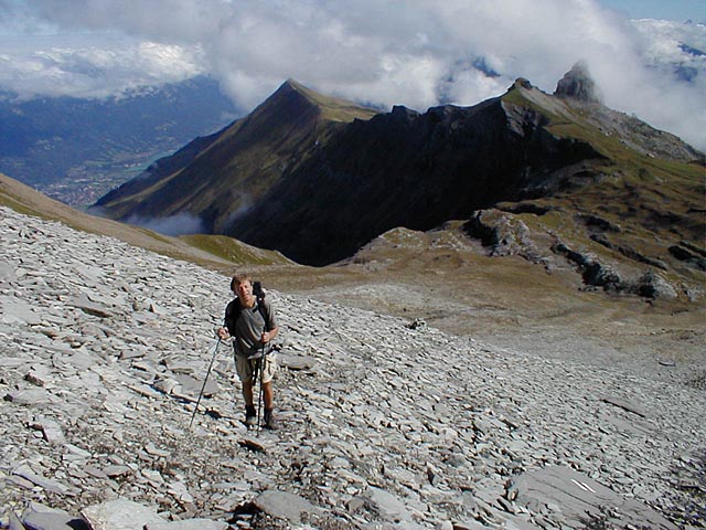 Kleis approaching the Schwalmere Pass. Interlaken can be seen beyond and below. |