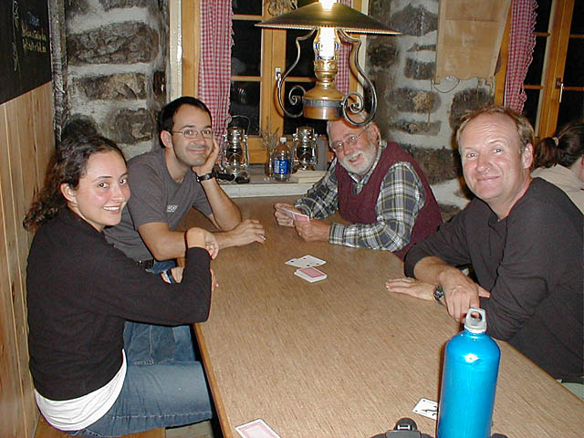 Kleis, Andrew, Ivo and Nicole arrive at the Rotstock Hut. |