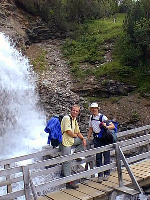 Bill and Andrew in front of the Schmadribach cooling down with turbulent air and spray. |