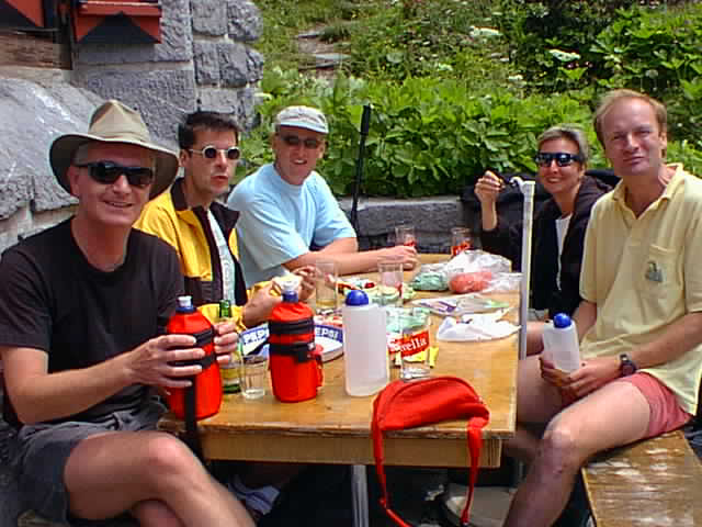 Andrew, Doug, Bill, and Janice having lunch on their way to Obersteinberg from Stechelberg. |