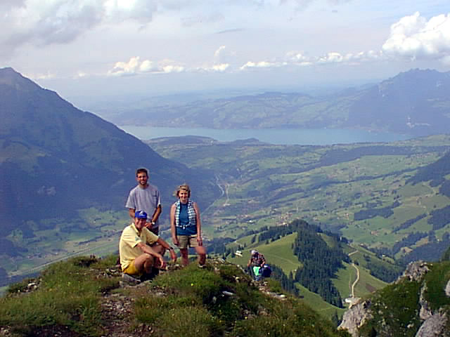 Andrew, Chad, and Maureen on top of the Gehrihorn near Kiental during optional day hike. Thunersee (lake) in the background. |