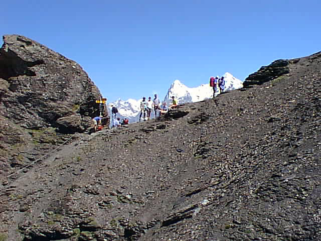 Jackie and Gary approaching the Sefinenfurke Pass. |