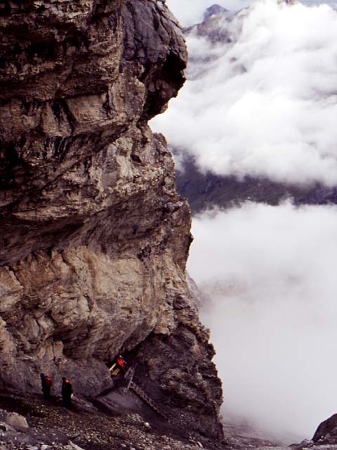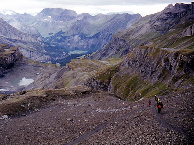 Steep descent from the Hohturli Pass. A hike down to the clouds! |