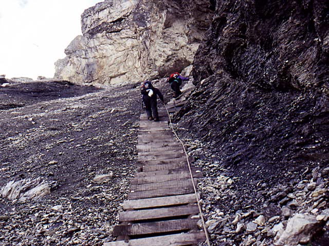 Rob and Libby descending steep stairs -- carefully! |
