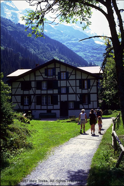 Mürren to LauterbrunnenYour final day is all down hill. If you did not have time to visit the village the day before, now is your chance to do so. Having no cars and being rather small, it is picturesque and quiet. Hiking down the valley, you traverse with great views of where you came from the previous days. Your accommodation in Lauterbrunnen will offer the usual hospitality and good food with the added luxury of a 3 star hotel. Possible public transportation will take you to Lauterbrunnen if Murren's day hikes are too irresistible! |